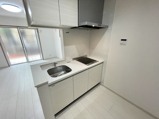 人気の対面キッチンはお手入れのしやすいIHコンロです。