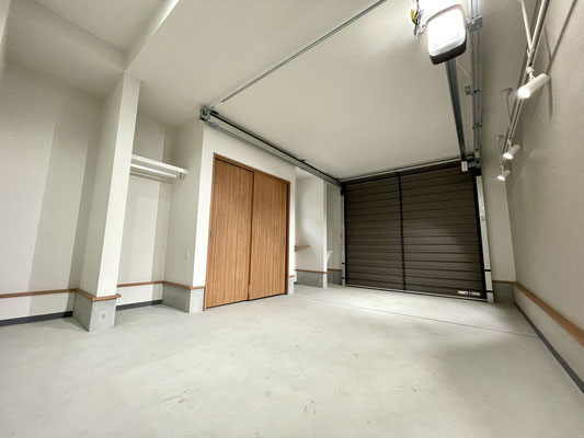 電動シャッターを開けるとガレージ内部はこんな感じ〜