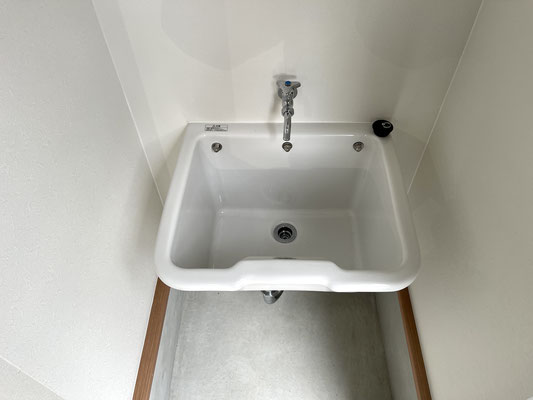 他にも大きな水受けの手洗い水栓や換気が出来る小窓、扉付きの収納スペース、