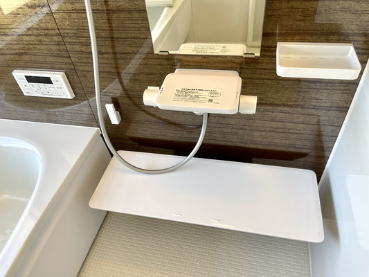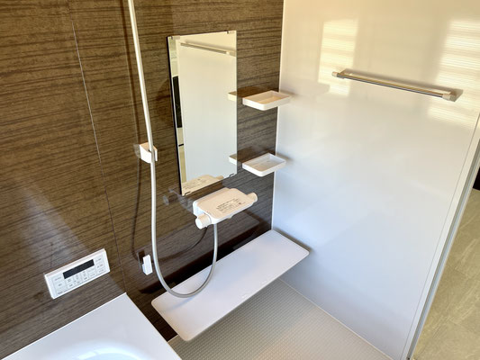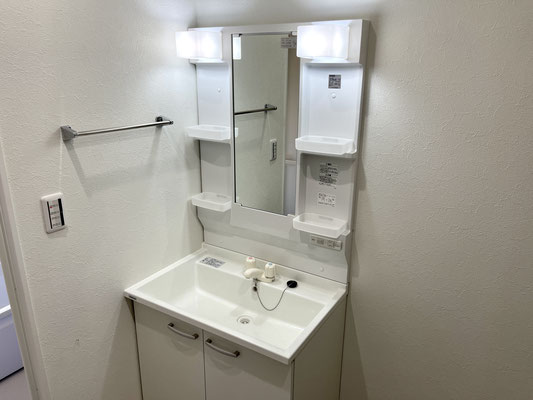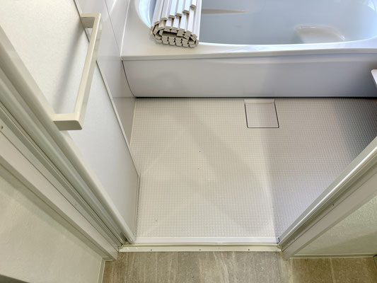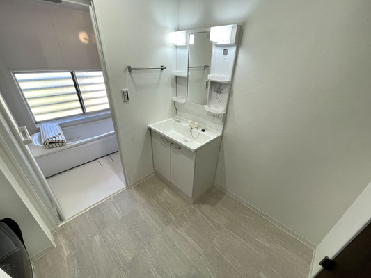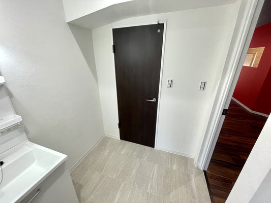 脱衣所に戻り、トイレの反対側には新品バスルーム!