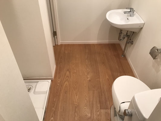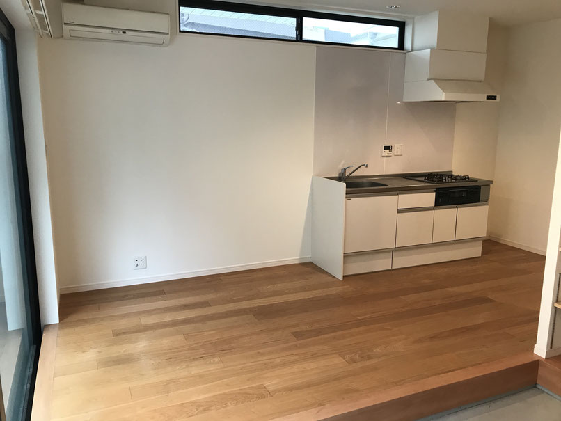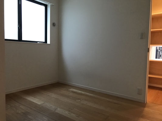 明るい色のフローリング床と白い壁が明るい気持ちにさせてくれる気持ちの良い空間です。
