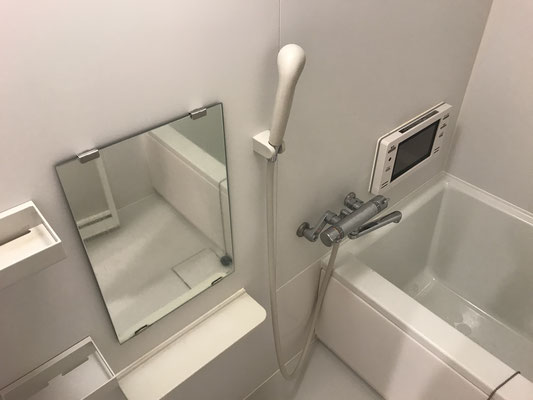 そしてこちらのバスルームですが、なんと防水TV付き!