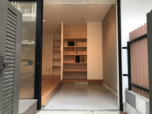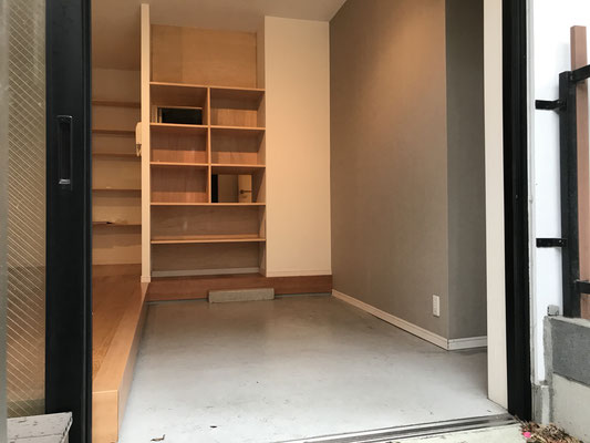 玄関は大きなガラスの引き戸になっていて天気が良ければ