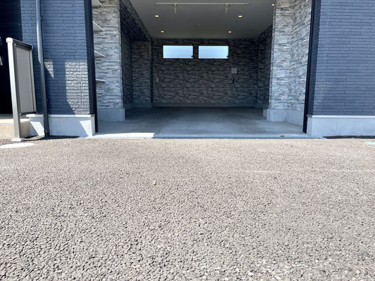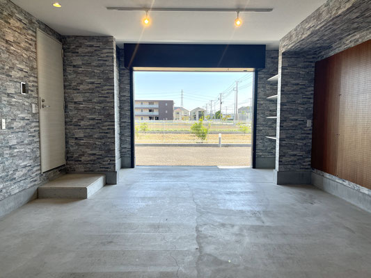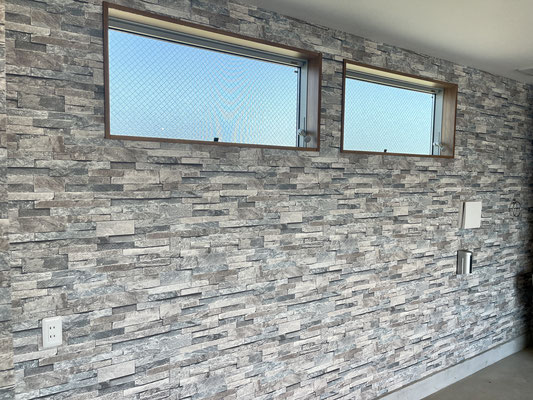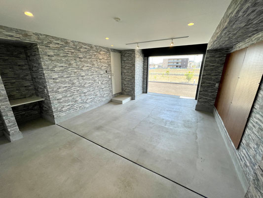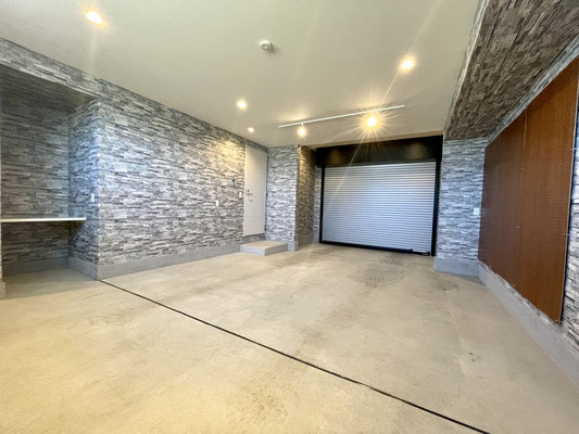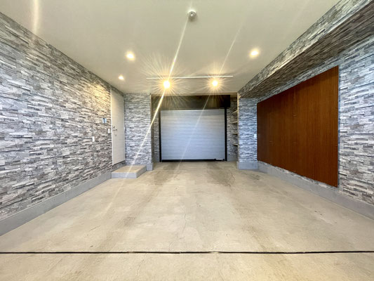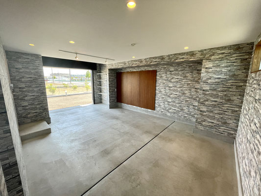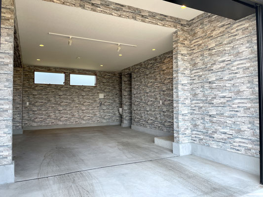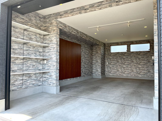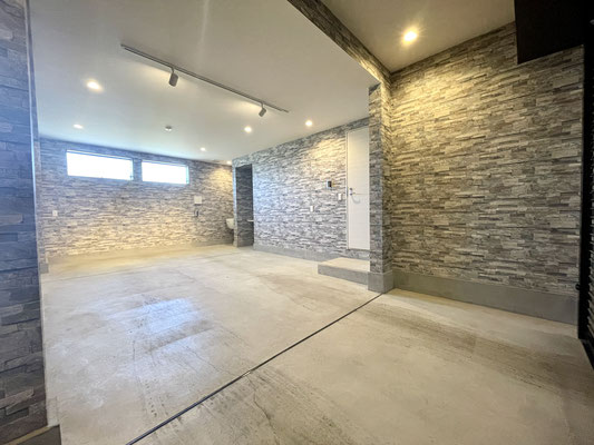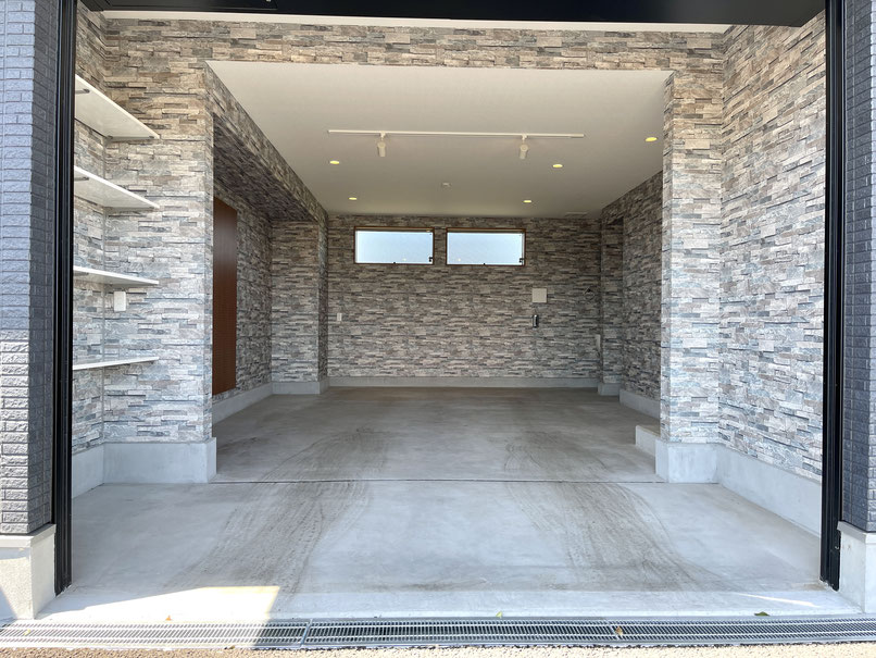 石目調の壁紙がオシャレなビルドインガレージ!!