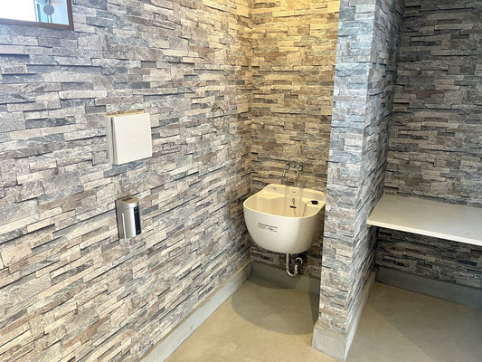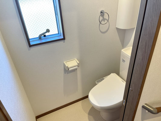階段を上がったところには清潔なトイレ。