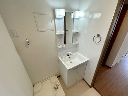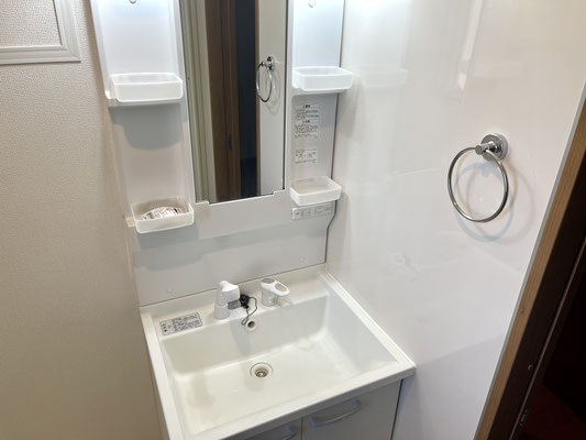 居室にある扉を開けると独立洗面台付きの脱衣所。