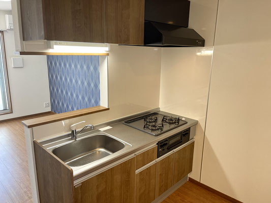 こちらもシンプルなシステムキッチンですが使い勝手が良さそう♪
