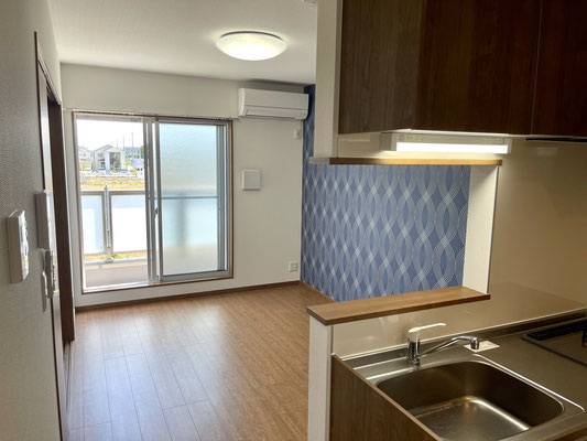 キッチン越しに見えるリビングも良い雰囲気〜