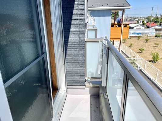 バルコニーのフェンスもスケルトンな素材だから外の光が沢山入って気持ちが良いね〜