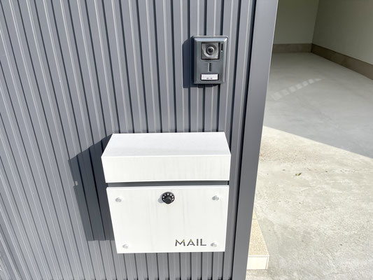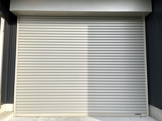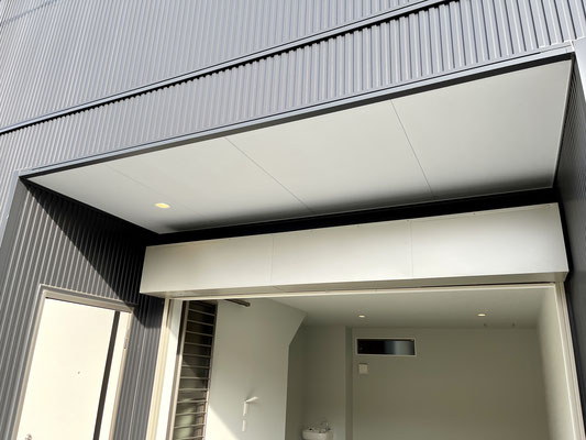 建物外観は黒系のガルバリウム鋼板とシャンパンゴールドのシャッターが