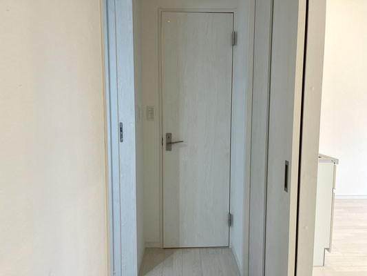玄関を入ってすぐ右手にはガレージに通じているドアがあります。