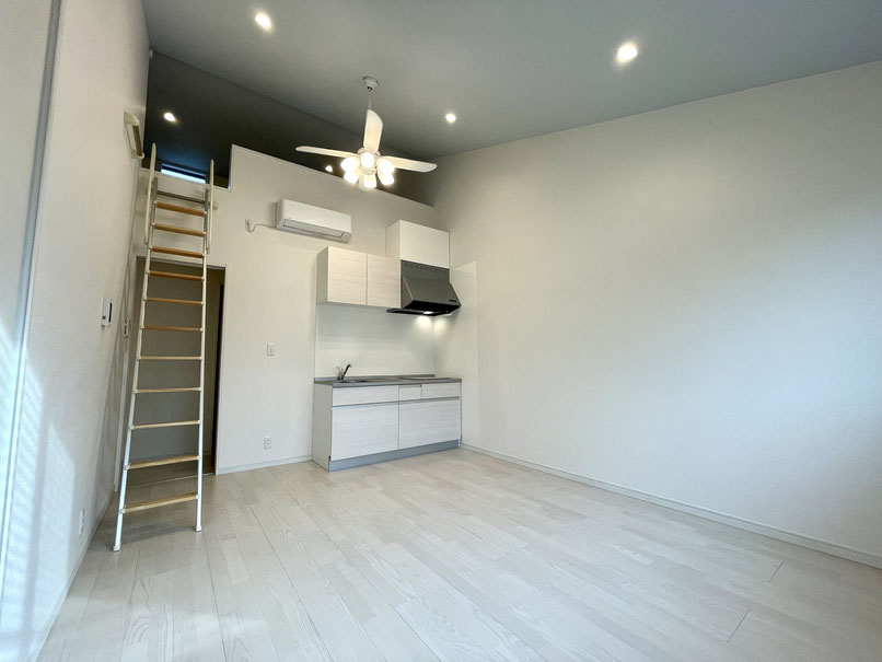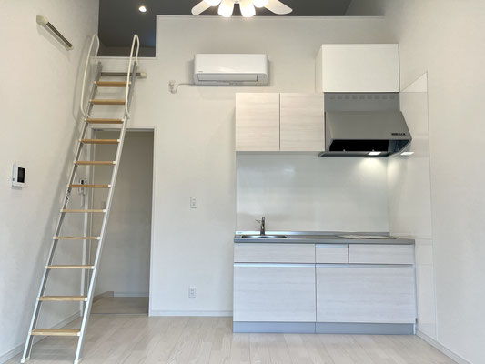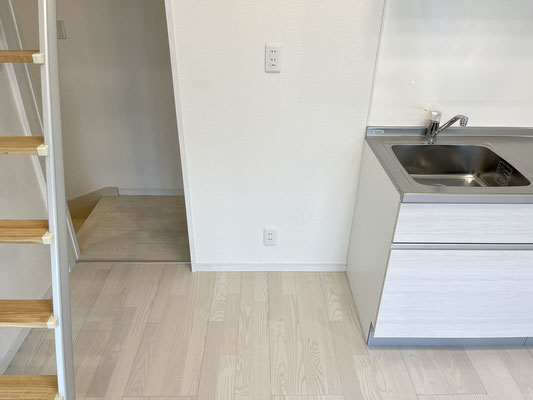 お部屋の隅にはシンプルなシステムキッチンもあります。