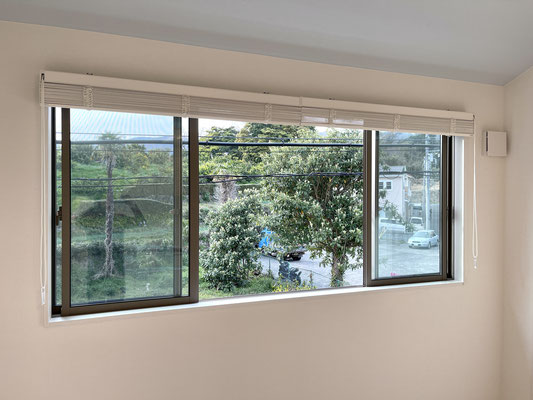 お部屋にある大きな窓にはブラインドカーテンだって付いています。