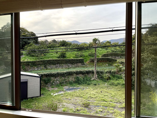 カーテンを畳んで窓を開けると、都会ではあまり味わえない豊かな緑と広い空。