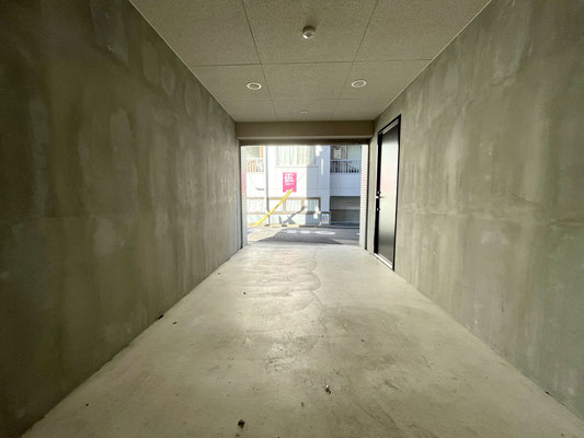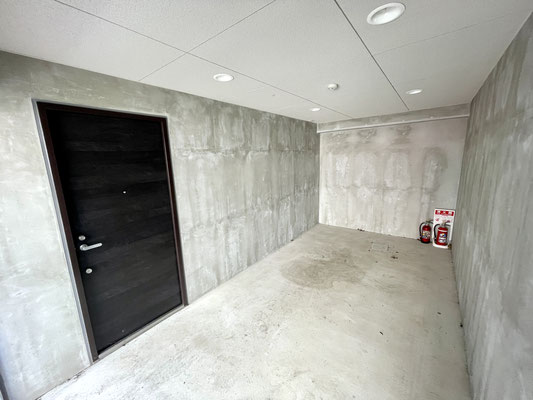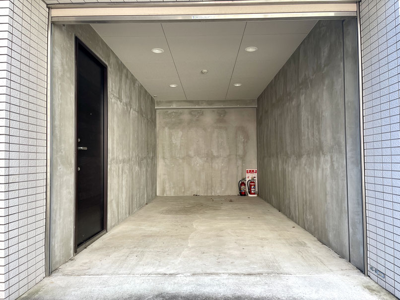 コンクリート床と壁が重厚なイメージの安心ガレージです♪