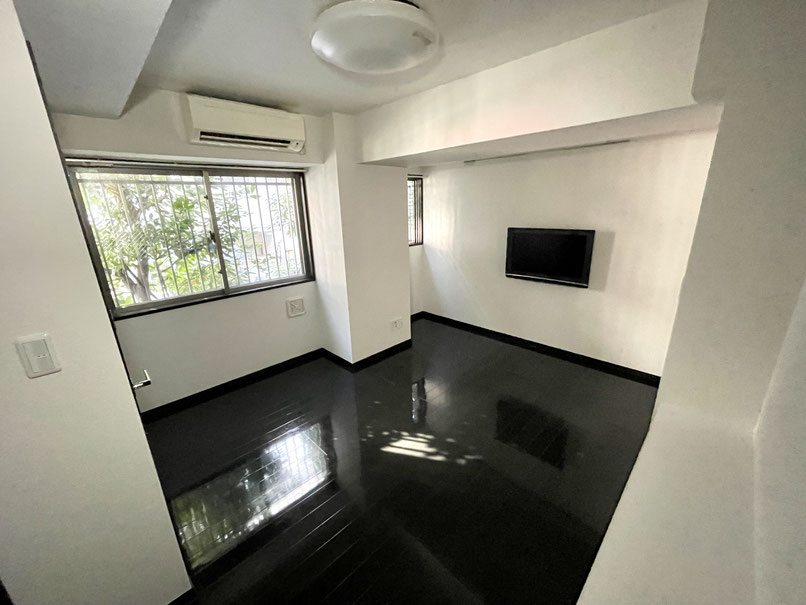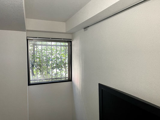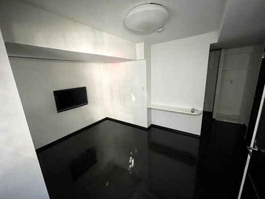 お部屋の中には壁掛けTVやエアコン、ピクチャーレールやちょっとしたカウンターテーブルもあります。