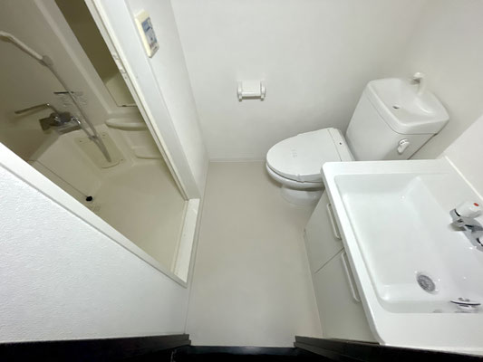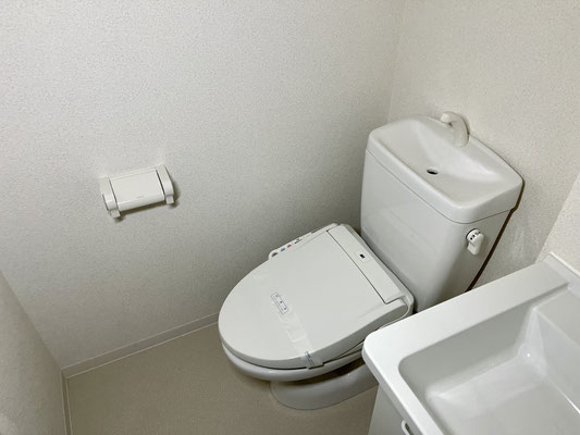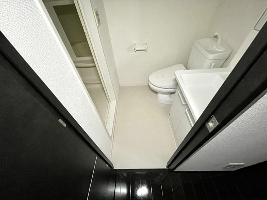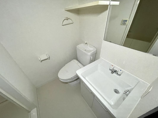 お部屋の中にある扉を開けると洗面台とトイレ。