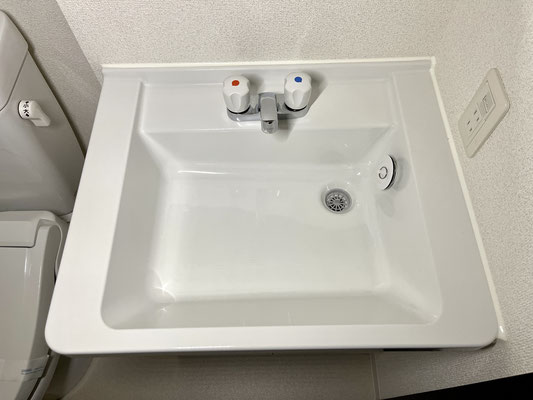 洗面台だって付いてるから、洗顔や歯磨きはココだね〜
