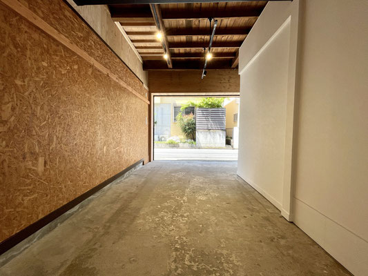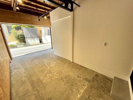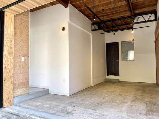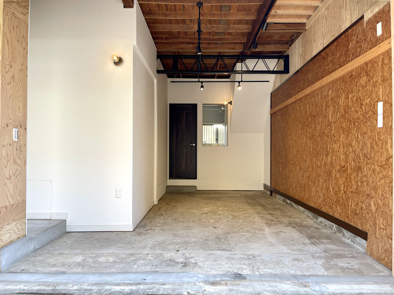 ガレージ奥には居室へと通じるドアがあります。