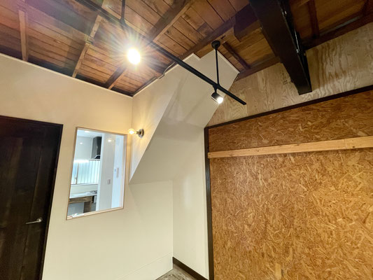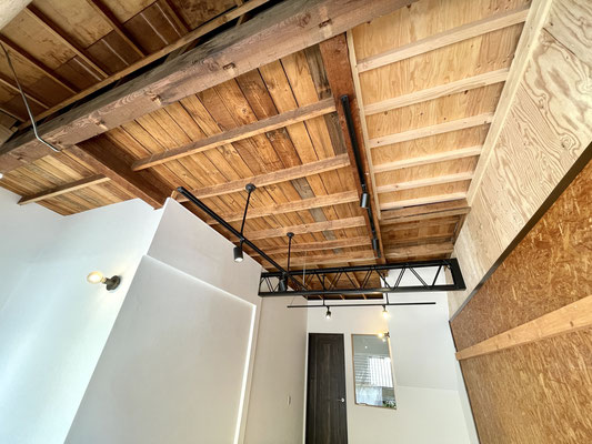 ヴィンテージな風合いの天井は素材の良さを生かしたまま、