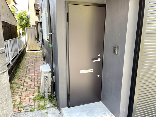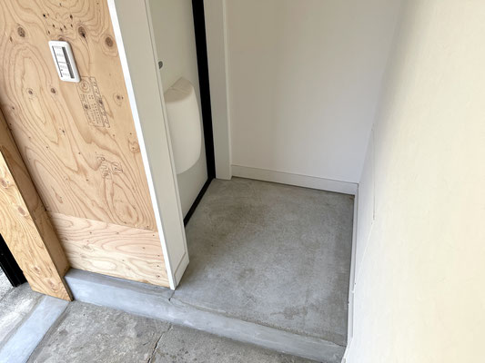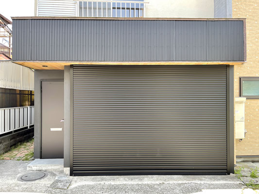 玄関ドアはシャッターのすぐ隣にあります。