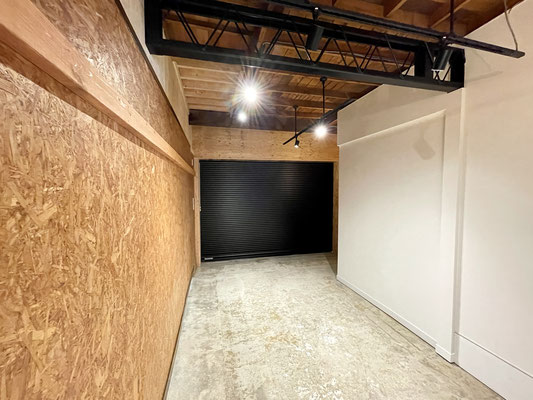 電動シャッターを開けるとガレージ内部はこんな感じ〜