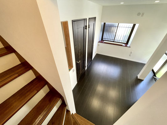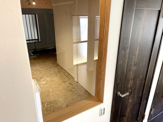 入ってすぐのドアの横にはガレージが見渡せる窓があり、居室にいながら愛車を眺めることが出来ます。
