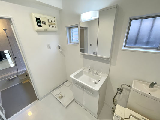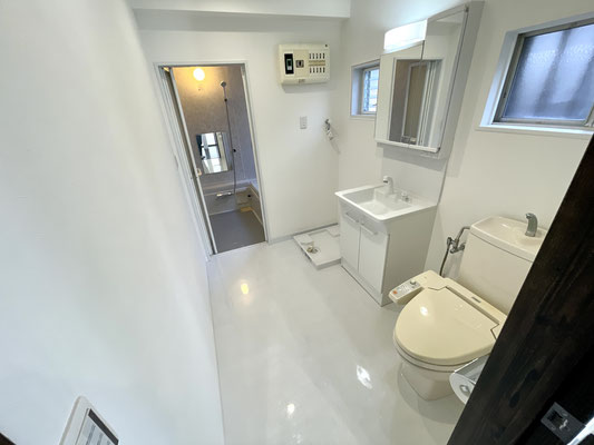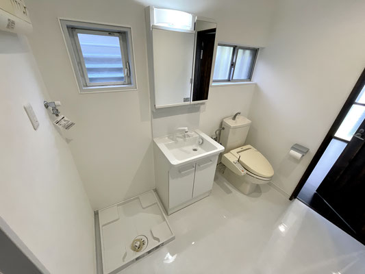 トイレ、洗面台、洗濯機置場が並んだ脱衣スペースは使い勝手も良さそうです♪