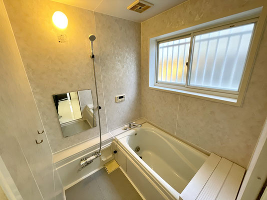 こちらにも大きな窓がある気持ちの良いバスルームです。