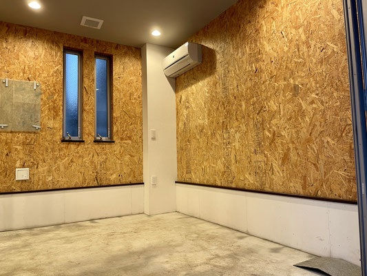 ガレージ内にはエアコンや洗車に便利な水栓だってあります。