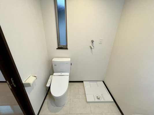 お部屋にあるもう一つの扉を開けると脱衣所を兼ねたトイレ。