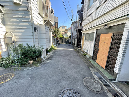 建物の前面道路は90度に折れ曲がった先で行き止まりになっている袋小路。