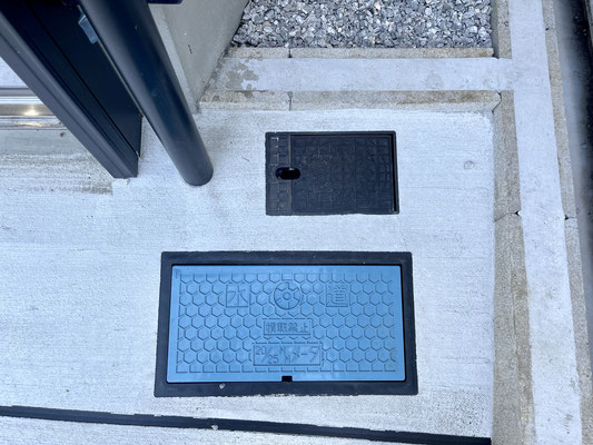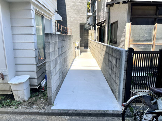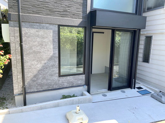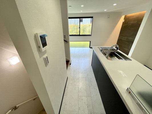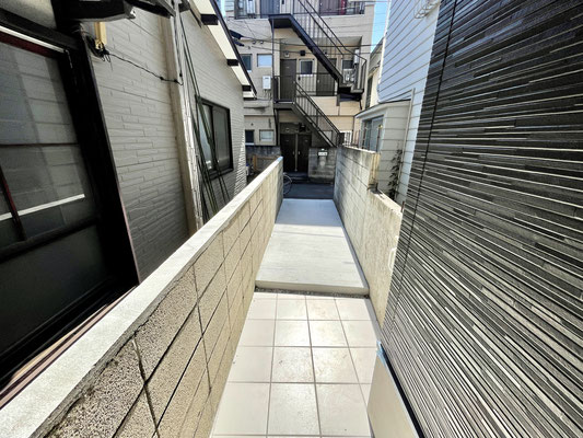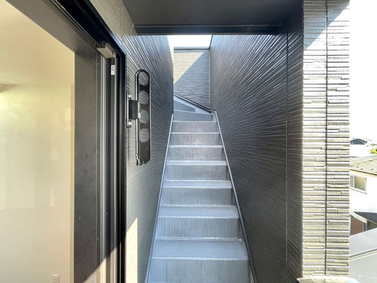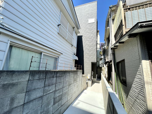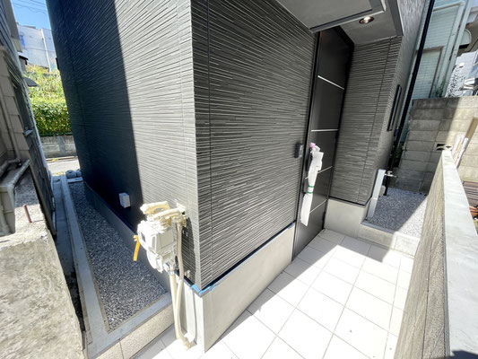 玄関ドアは建物の裏手、道路から専用通路を通ってアプローチ出来ます。