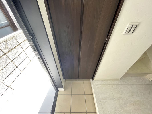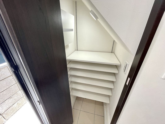 中に入ってすぐ左手には階段下を利用した下駄箱収納!