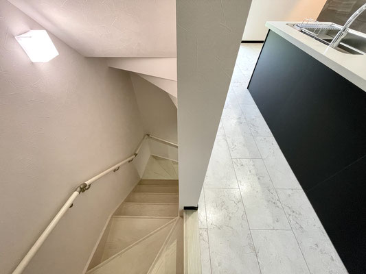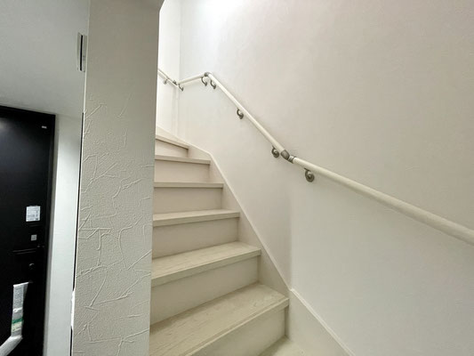 小窓も多く明るい雰囲気の階段を上がった所にはランドリースペースがあります。