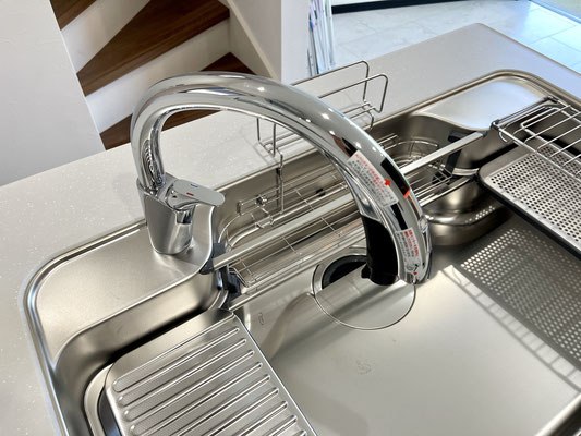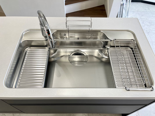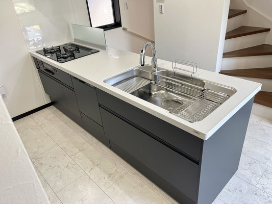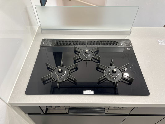 コンロはIHではなく3口ガスタイプ!作業のしやすそうなシンクも大型で水栓はタッチレス!!