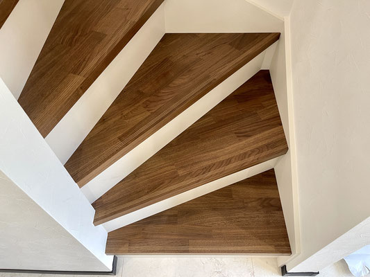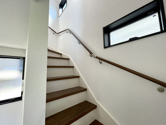 2階から3階への階段は落ち着いたブラウンの階段です。