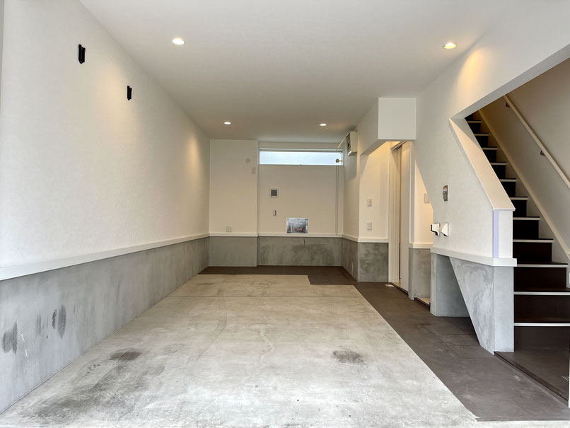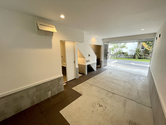 1階のガレージには水まわりがあったんですね〜