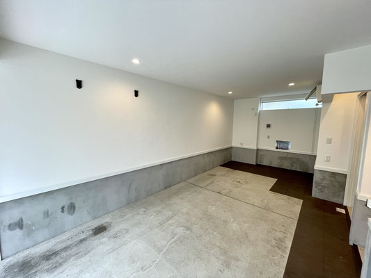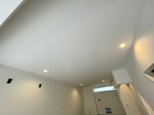 ガレージ天井は埋込み型のダウンライトが設置済。