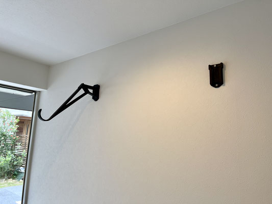 シャッター付近には室内物干しも完備!使用しない時にはアームを外して収納出来ます。