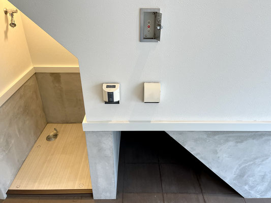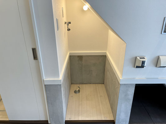 ガレージに水まわりがあるのでガレージ用のルームシューズやサンダルを用意すると良いね♪