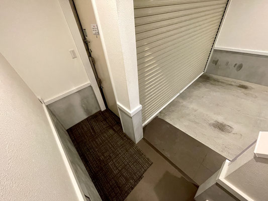 ちなみにガレージシャッターのすぐ隣にある玄関ドアを開けるとガレージにアプローチする作り。