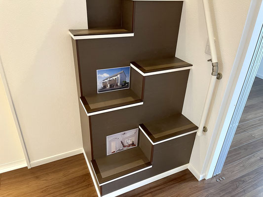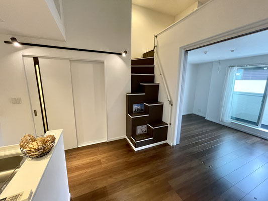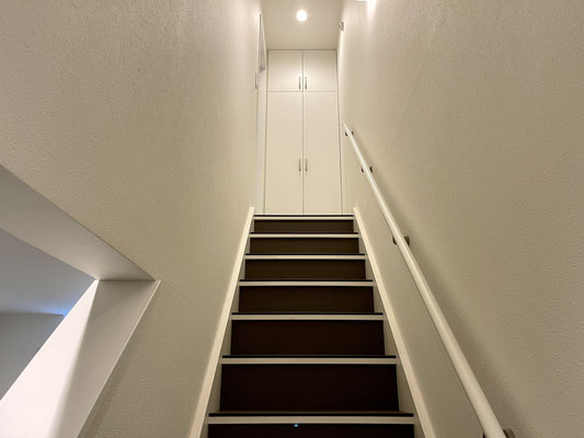 登ってみると階段途中にも収納がありました。
