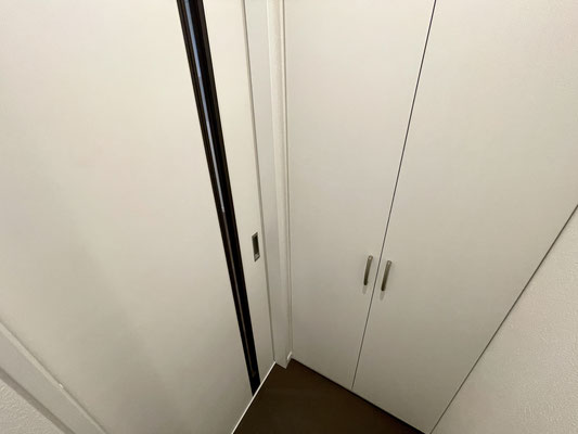 仕切りは3枚のスライドドアで床はレールレスなので開けて使用しても違和感はありません。