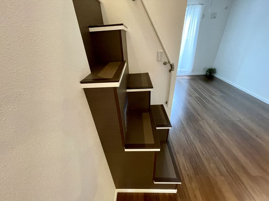 さて、お部屋の中には不思議な形状の階段もあります。