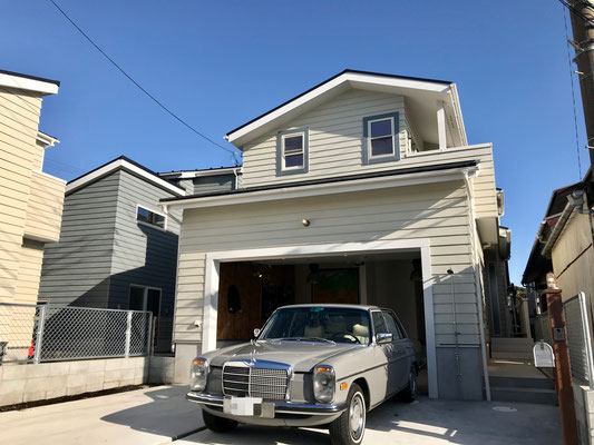 ガレージを含めた「いえ」全体が明るい雰囲気でアメリカの西海岸のようですね♪
