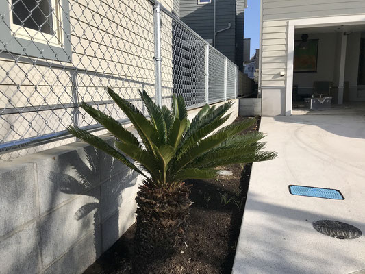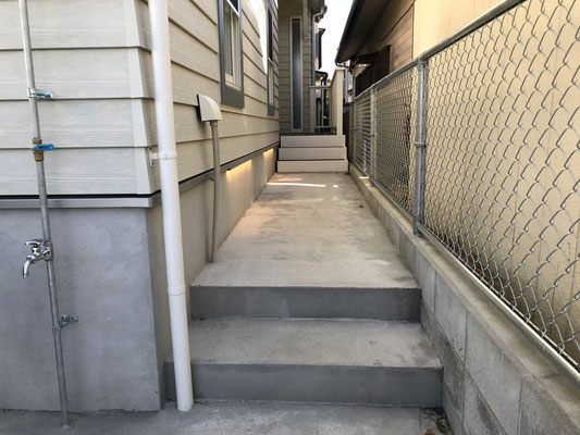 ガレージの脇に玄関に通じる通路があります。