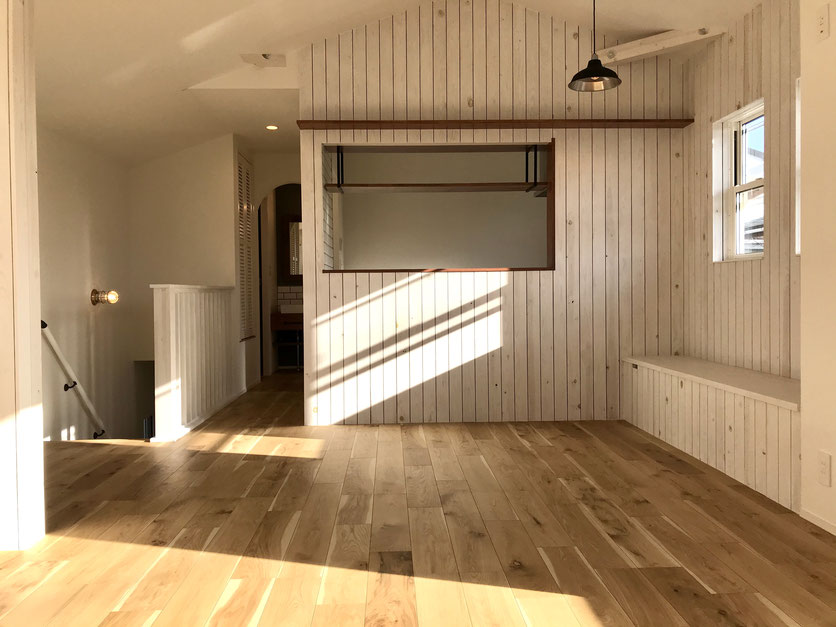 階段を登ると18.9帖の広々としたLDK。