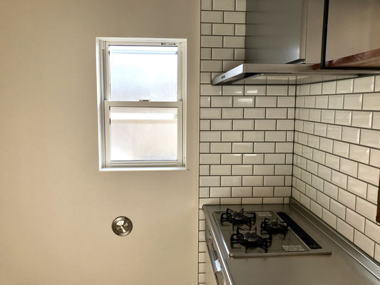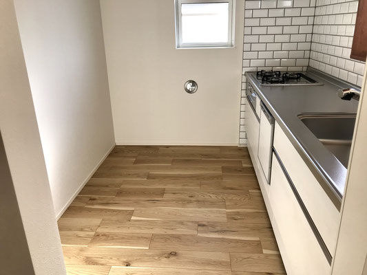 タイルが可愛いキッチンは広さも十分。