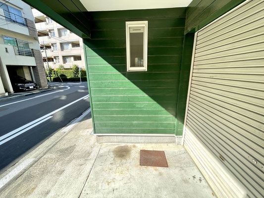 玄関はガレージシャッターのすぐ近くにあります。